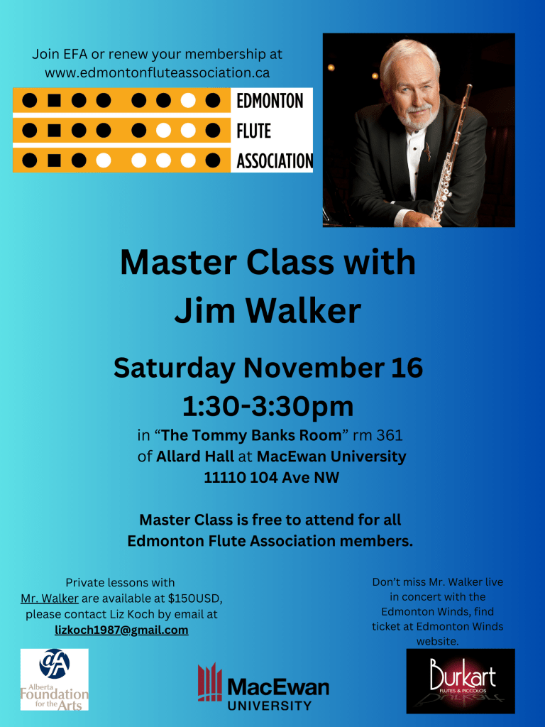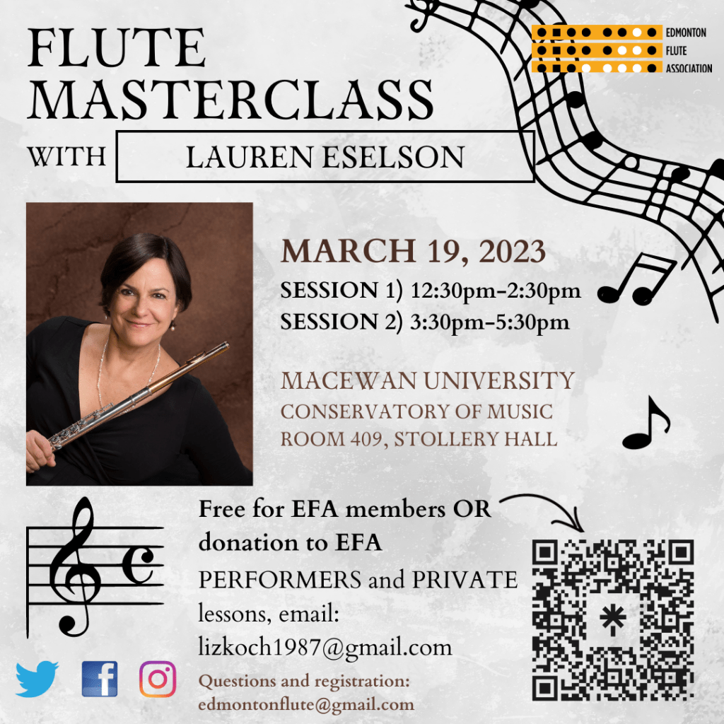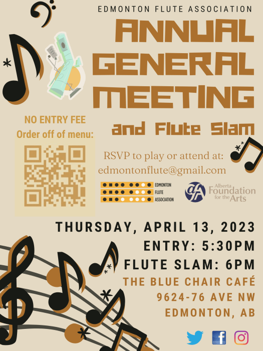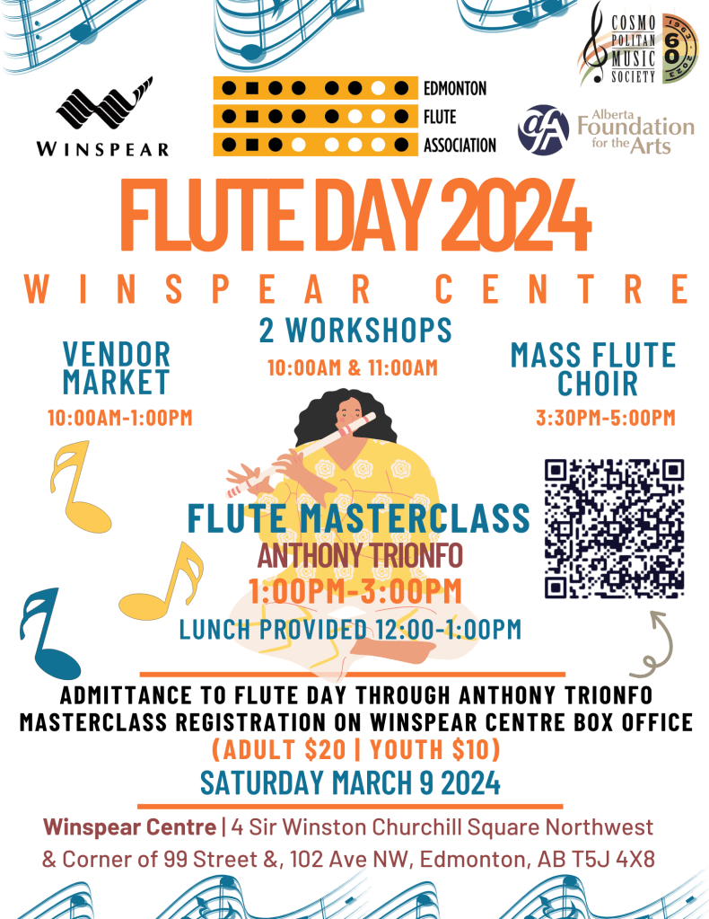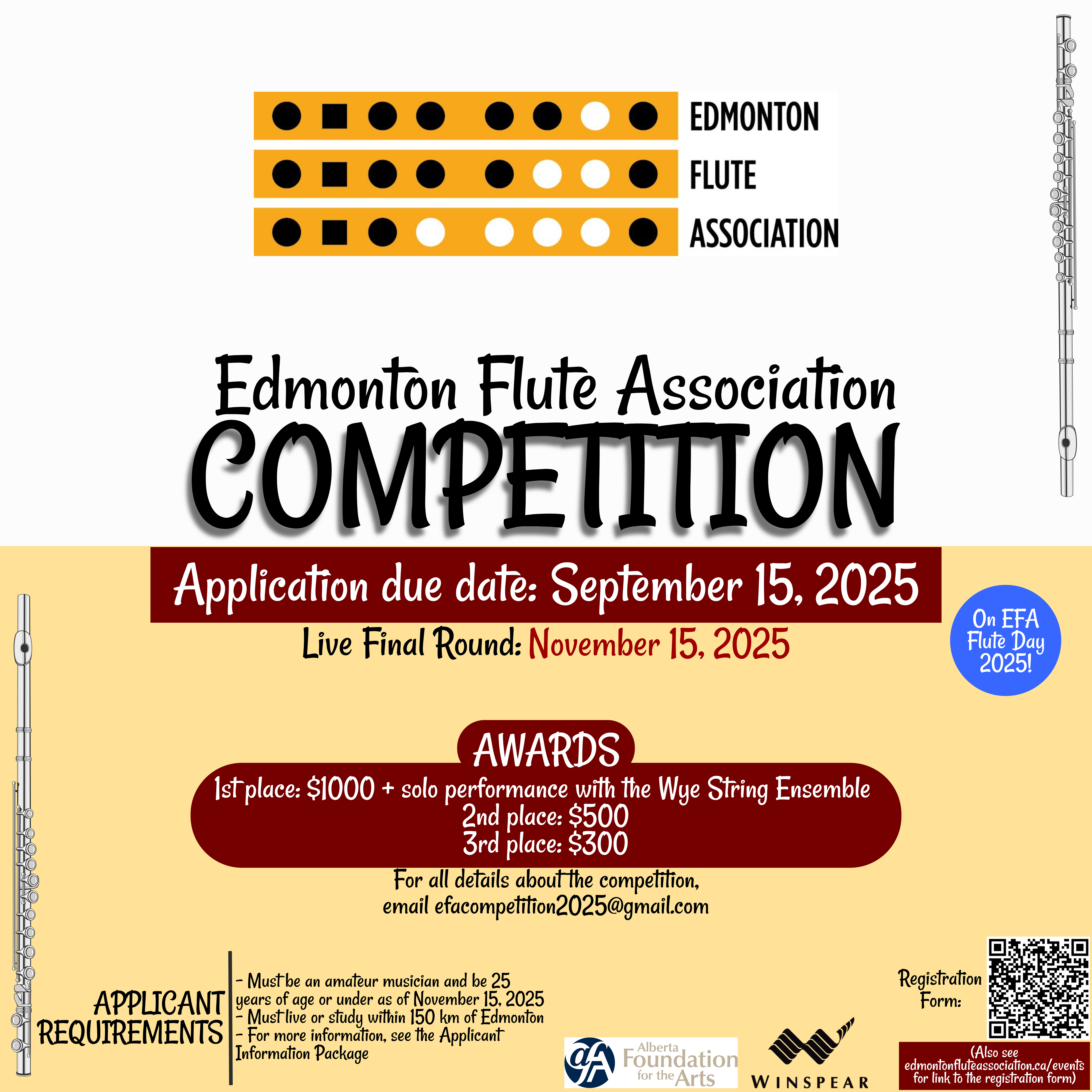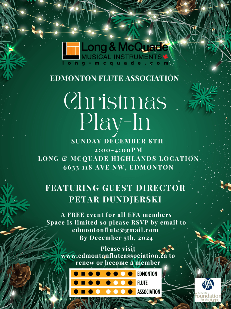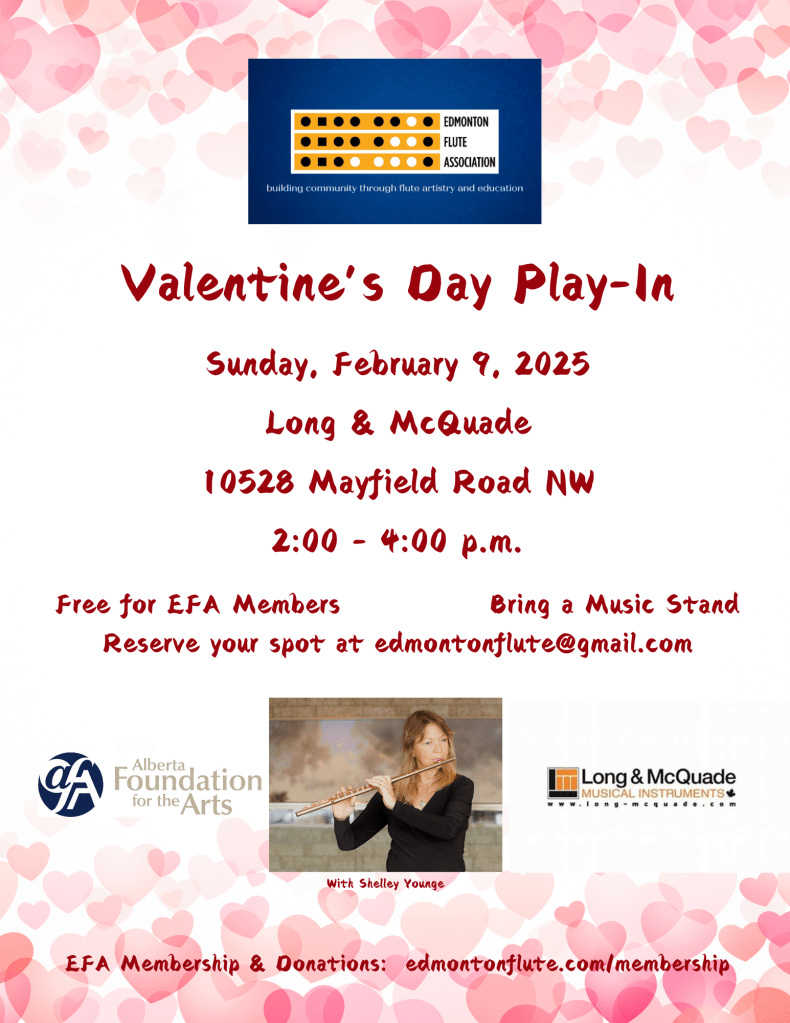 We have lots of events in the works, such as play-ins, workshops, Flute Slams and much more! Stay up to date with us on social media! Follow @edmontonflute